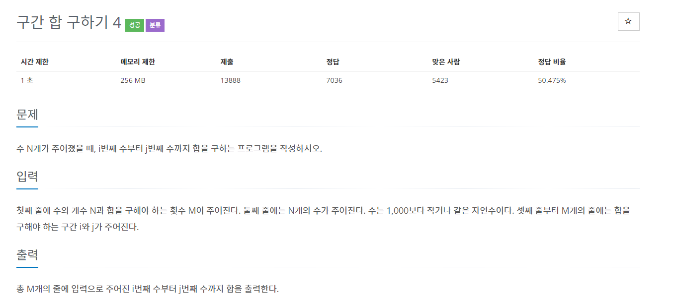 구간 합 구하기 문제입니다