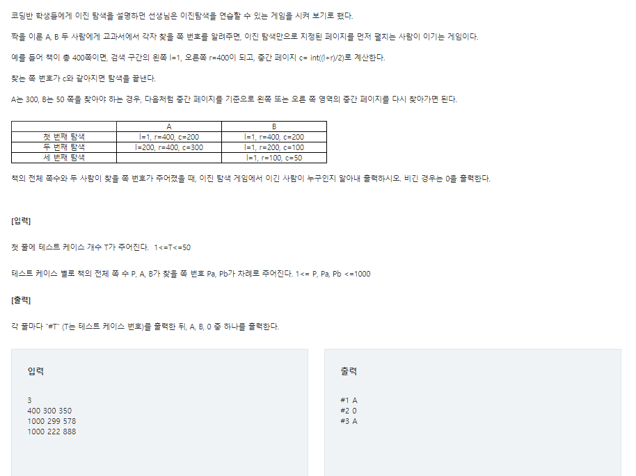 SWEA 문제 4839. 이진탐색