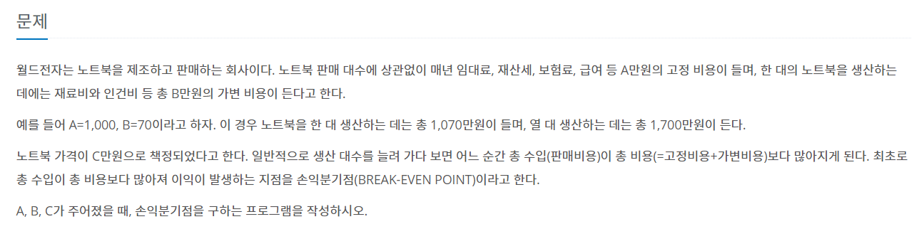 [1712번] 손익분기점